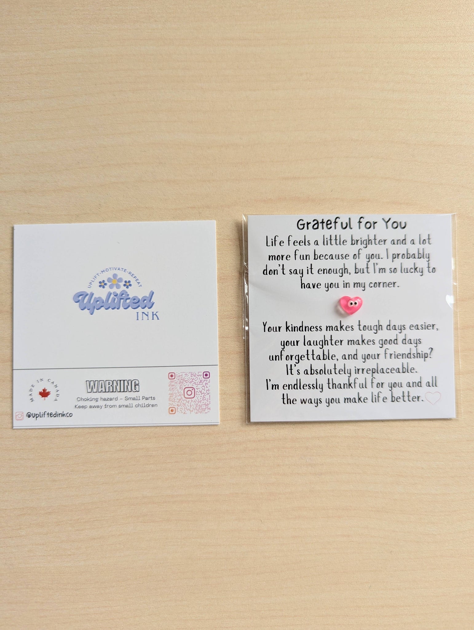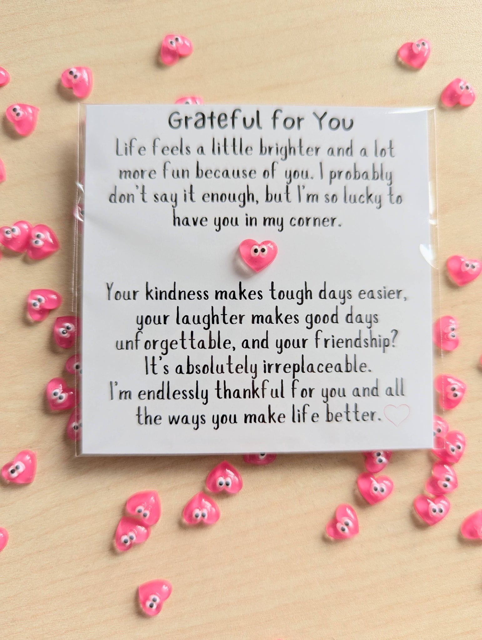 💛 Grateful for you. Life is a little brighter and a lot more fun because of you. 💛 Sometimes, words aren't enough to express just how much someone means to you—but this tiny gratitude card comes pretty close. Whether it's for a best friend, sibling, mentor, or anyone who’s been in your corner, this mini card is a heartfelt reminder that their presence truly makes life better. This card reads: "I probably don't say it enough, but I'm so lucky to have you in my corner. Your kindness makes tough days easier, your laughter makes good days unforgettable, and your friendship? It's absolutely irreplaceable. I'm endlessly thankful for you and all the ways you make life better." ✨ Product Details: • Size: 2.5" x 2.5" square – compact and full of meaning • Message: A thoughtful appreciation note for someone special • Printed on premium cardstock for a beautiful, sturdy finish • Blank back so you can add your own note if you'd like