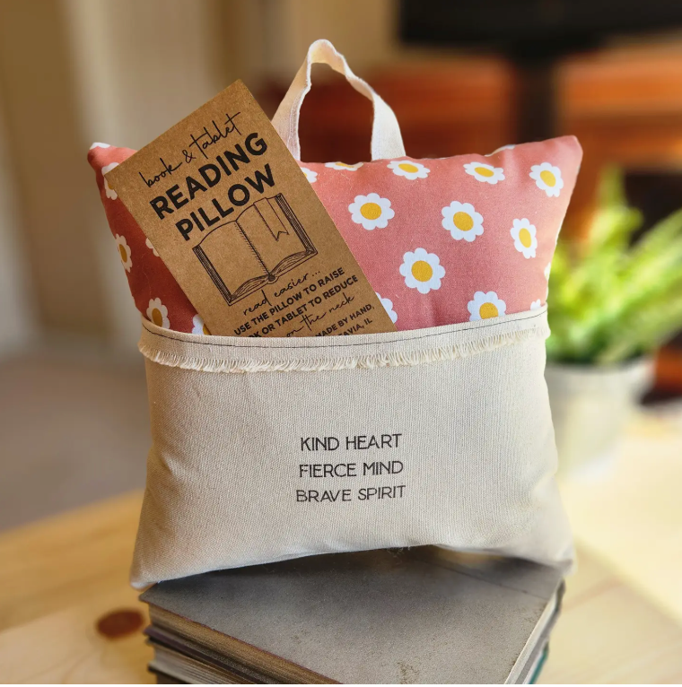 *Designed to reduce neck strain, the reading pillow gently elevates book or device to a more comfortable viewing angle This design has a woodland friends print fabric and quote on the pocket reads: I Love to Read Gifts for readers, bookworms, graduation, confirmation, gift for her, birthday, retirement, teacher, travel pillow, pocket pillow, book pillow, encouragement, literature, literary, gift idea