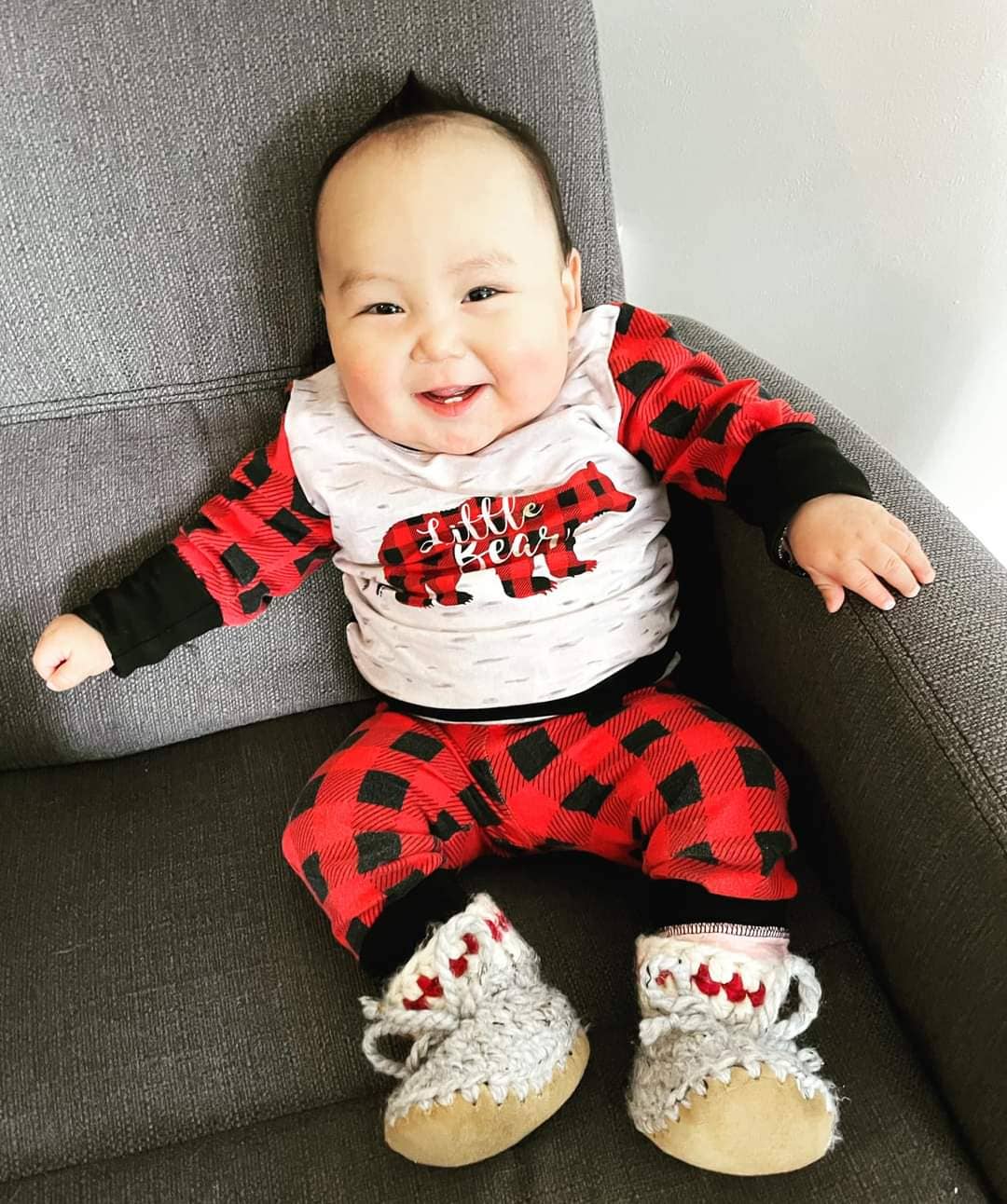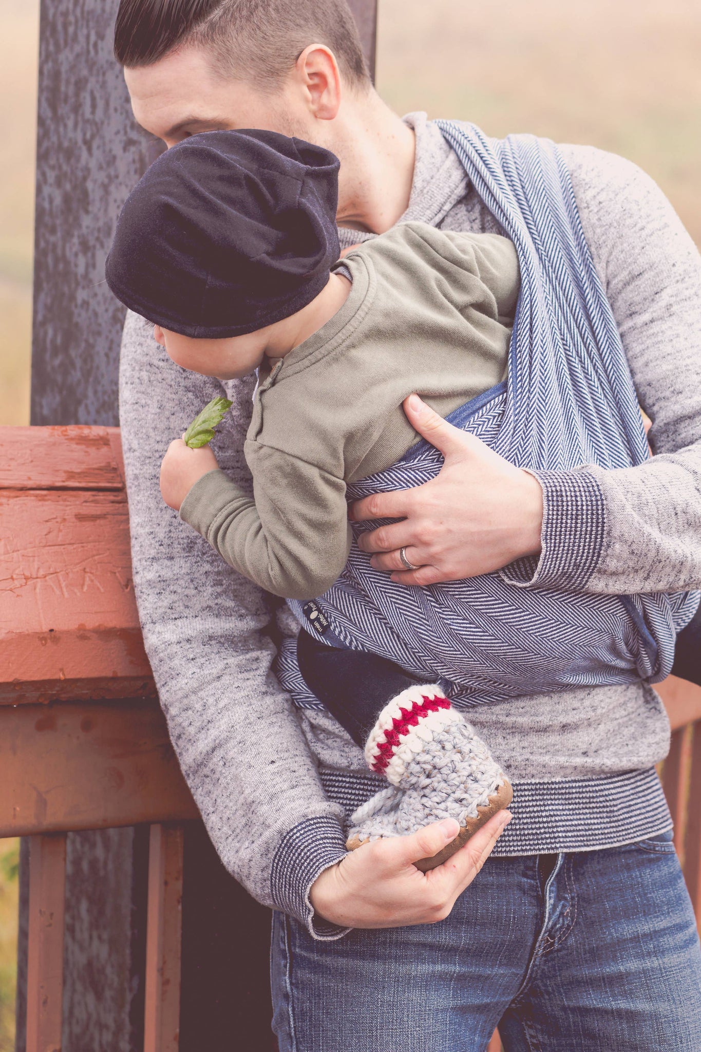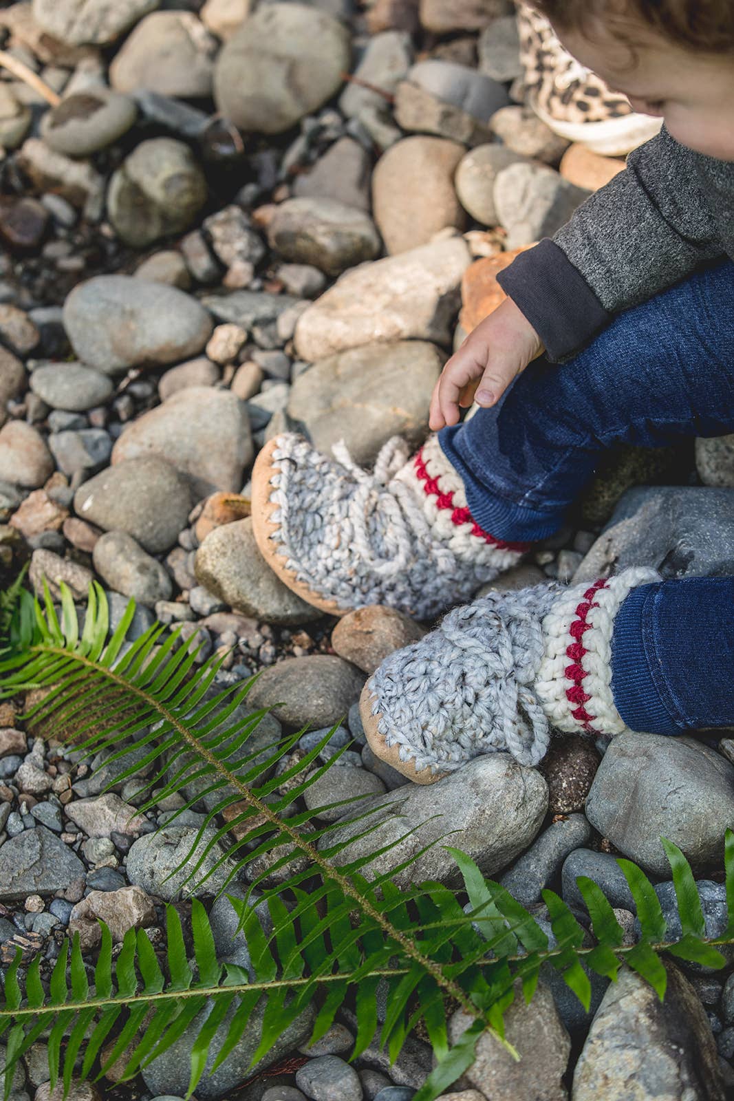 Huddy Buddies are made with a durable and washable eco-suede sole which is lined with a plush faux-fur for comfort and warmth. The hand crocheted uppers are made with soft 20% wool blend yarn that is soft and not itchy. These soft sole slippers will easily slip-on any little foot no matter how chubby or narrow... and STAY PUT with their functional laces. Be sure you tighten those laces and you will not arrive home to find one slipper missing and cold little toes. The soft soles not only allow these slippers to grow with your baby over many sizes but they are also weather-resistant and great for indoor and outdoor use. Mind you the crochet portion of the slipper is not very fond of puddles. If you do get them dirty simply throw in the washing machine and then let them air dry. Pediatricians recommend soft soles for littles up to two years to allow for healthy footdevelopment and to promote balance and coordination to early walkers. The next best thing to barefoot are Huddy Buddies.