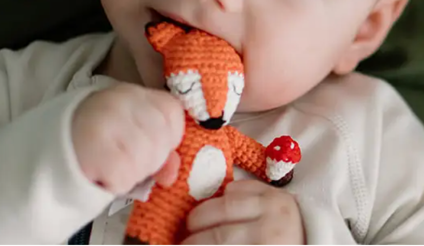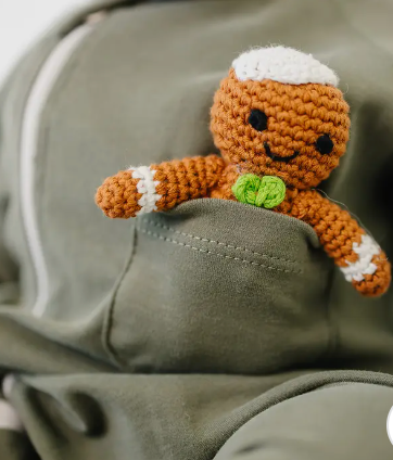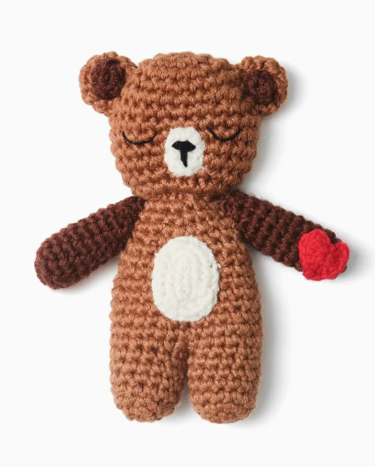 Meet our fun-loving crochet friend, Puppy, playing with his favorite bone toy. Hand-knitted with premium 100% cotton yarn, this Pocket Pal meets or exceeds all US safety standards. With a snap button on its back, it easily attaches to any OLT apparel, making it the perfect companion for all your little one's adventures.