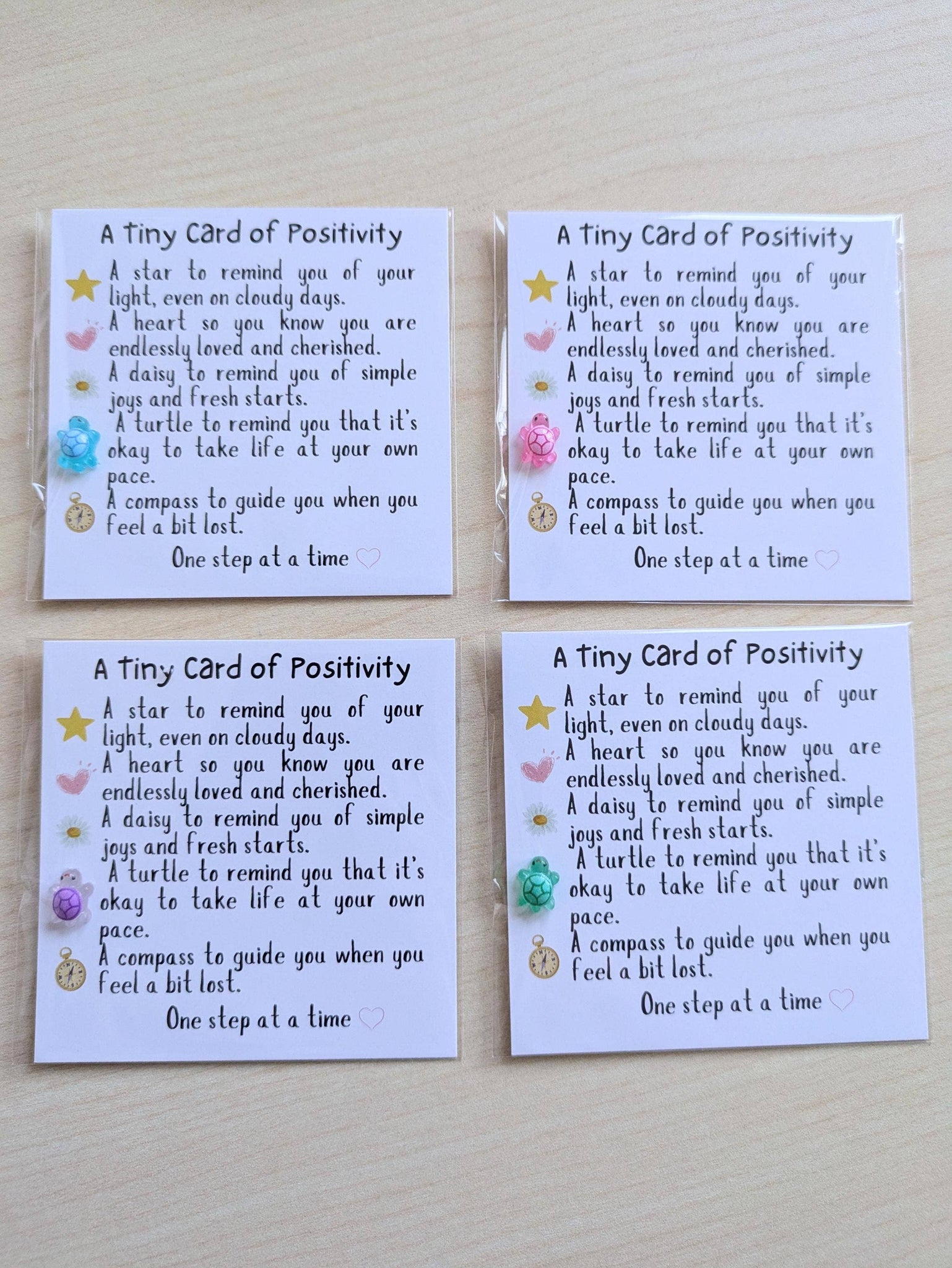 Tiny Card of Positivity with Turtle Figurine - Encouragement, Friendship, Motivational Gift, Cute Mini Card, Personalized Note Option