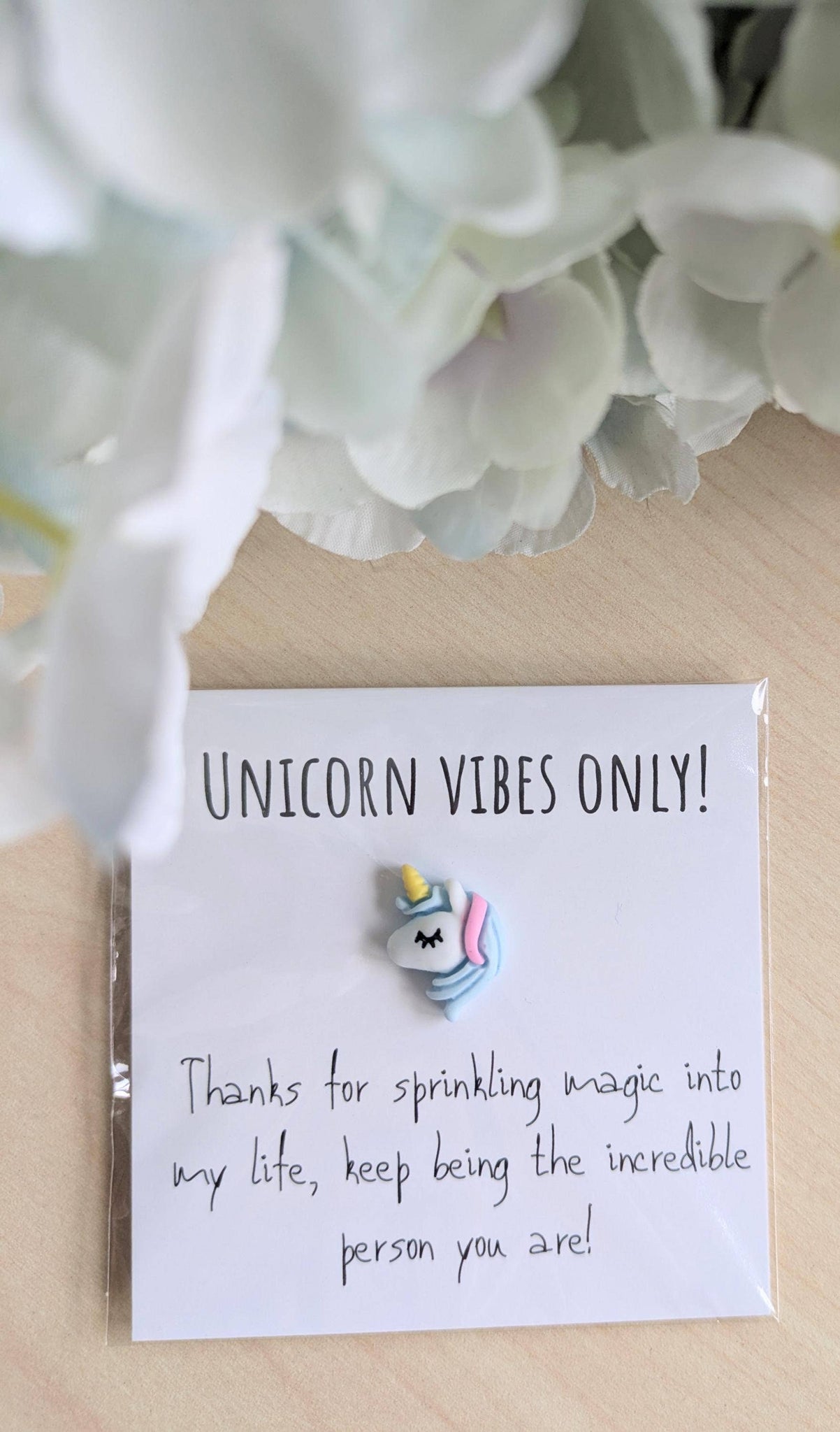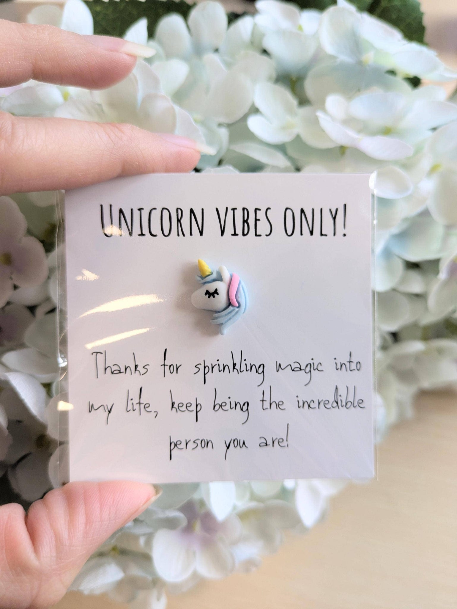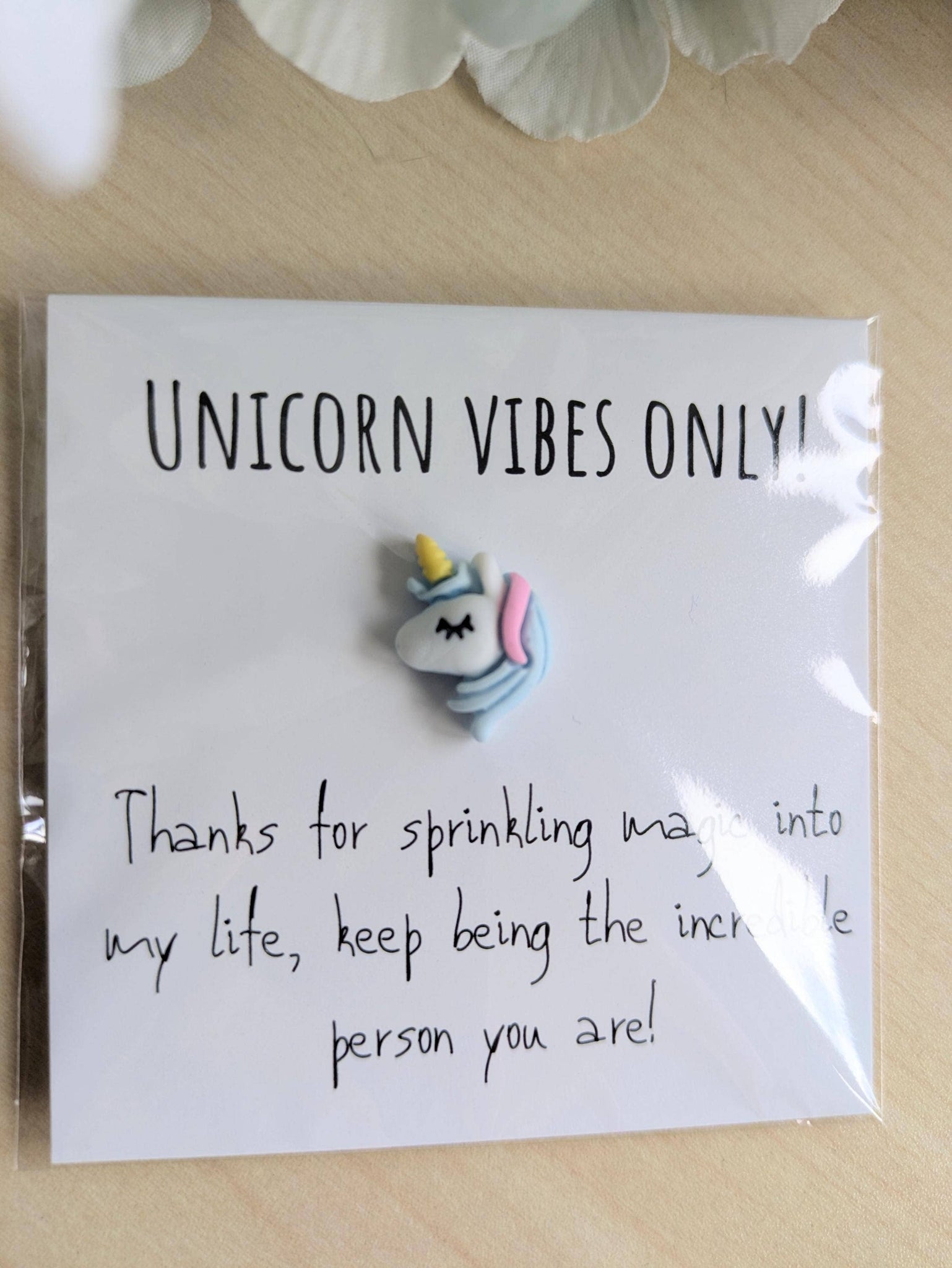 Unicorn Vibes Only Card with Tiny Unicorn – 2.6" Mini Pocket Note, Personalized Message Option, Perfect for Friends and Loved Ones